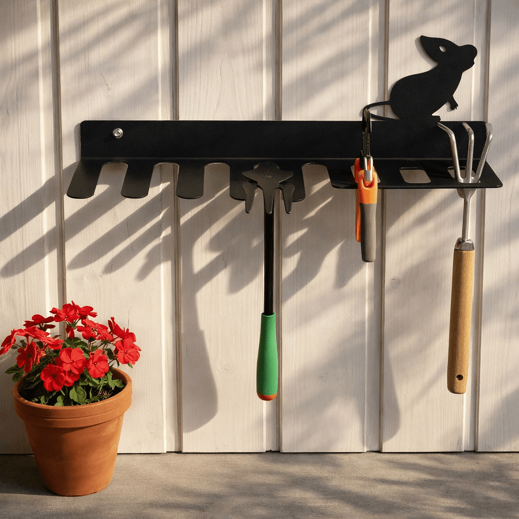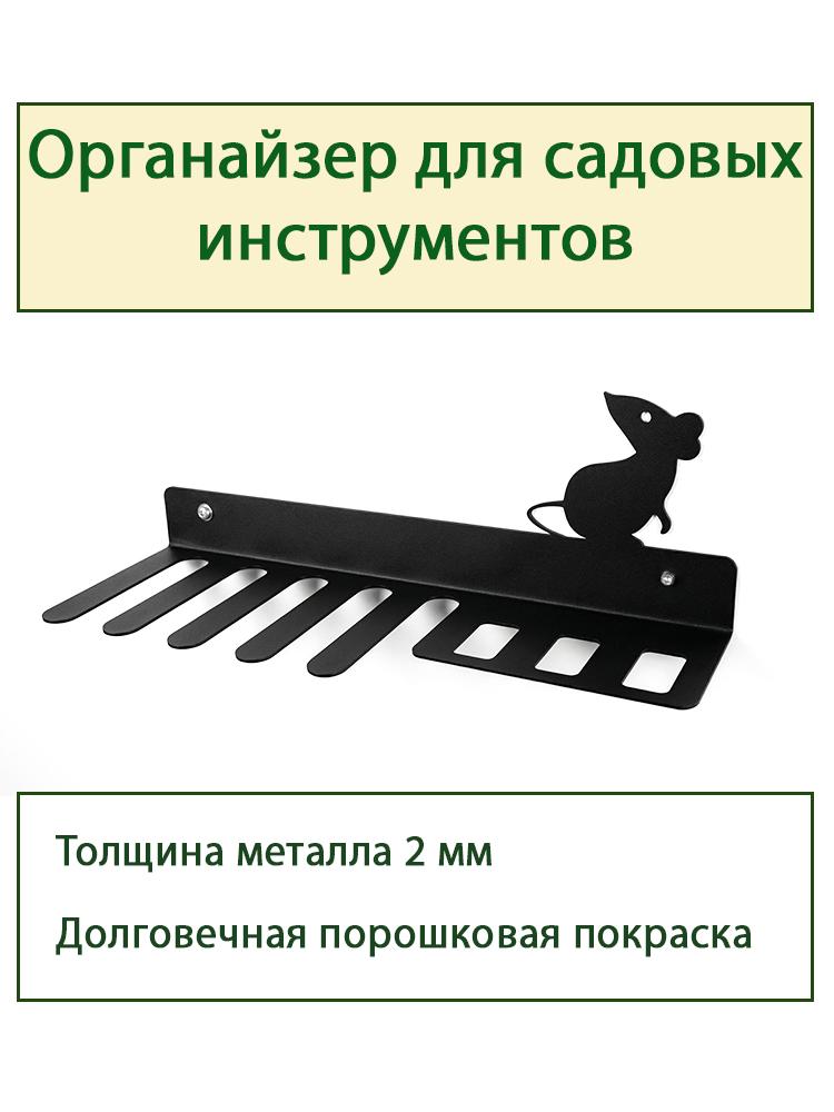 Держатель для садового инвентаря — это незаменимый инструмент для организации и хранения ваших садовых инструментов. Благодаря этому удобному аксессуару вы сможете собрать все свои садовые принадлежности в одном месте, что значительно повысит эффективность работы в саду Органайзер для садового инвентаря выполнен из высококачественного прочного металла толщиной 2 мм и покрыт долговечной порошковой краской. Его легко установить на стену или любую другую вертикальную поверхность